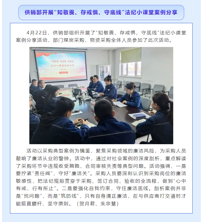 供銷部開展“知敬畏、存戒懼、守底線”法紀(jì)小課堂案例分享