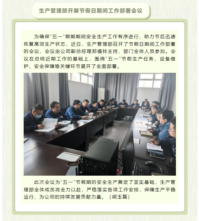 生產(chǎn)管理部開展節(jié)假日期間工作部署會議